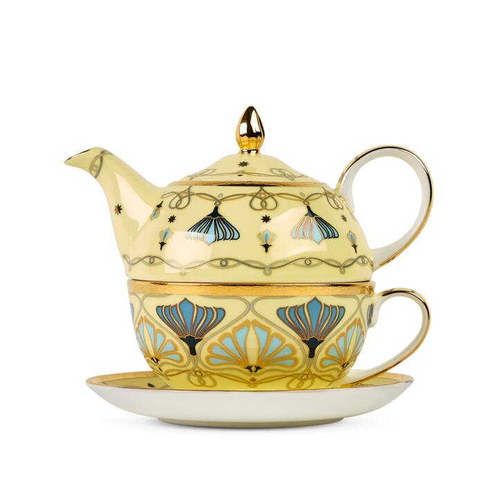 Bienvenue. Brew a cup of tea for one with our carnival-inspired fine bone china.
