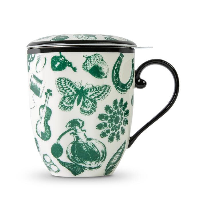 Porcelain with a collage of curios found in antique stores, junk drawers and galleries.