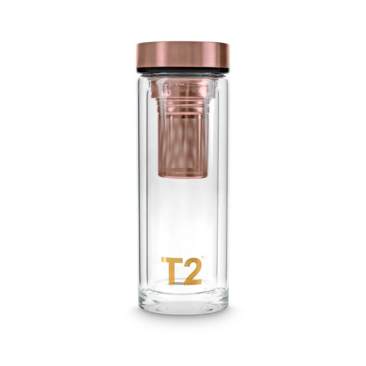 The perfect reusable tea bottle! Enjoy durable double-walled glass with a stainless steel infuser.
